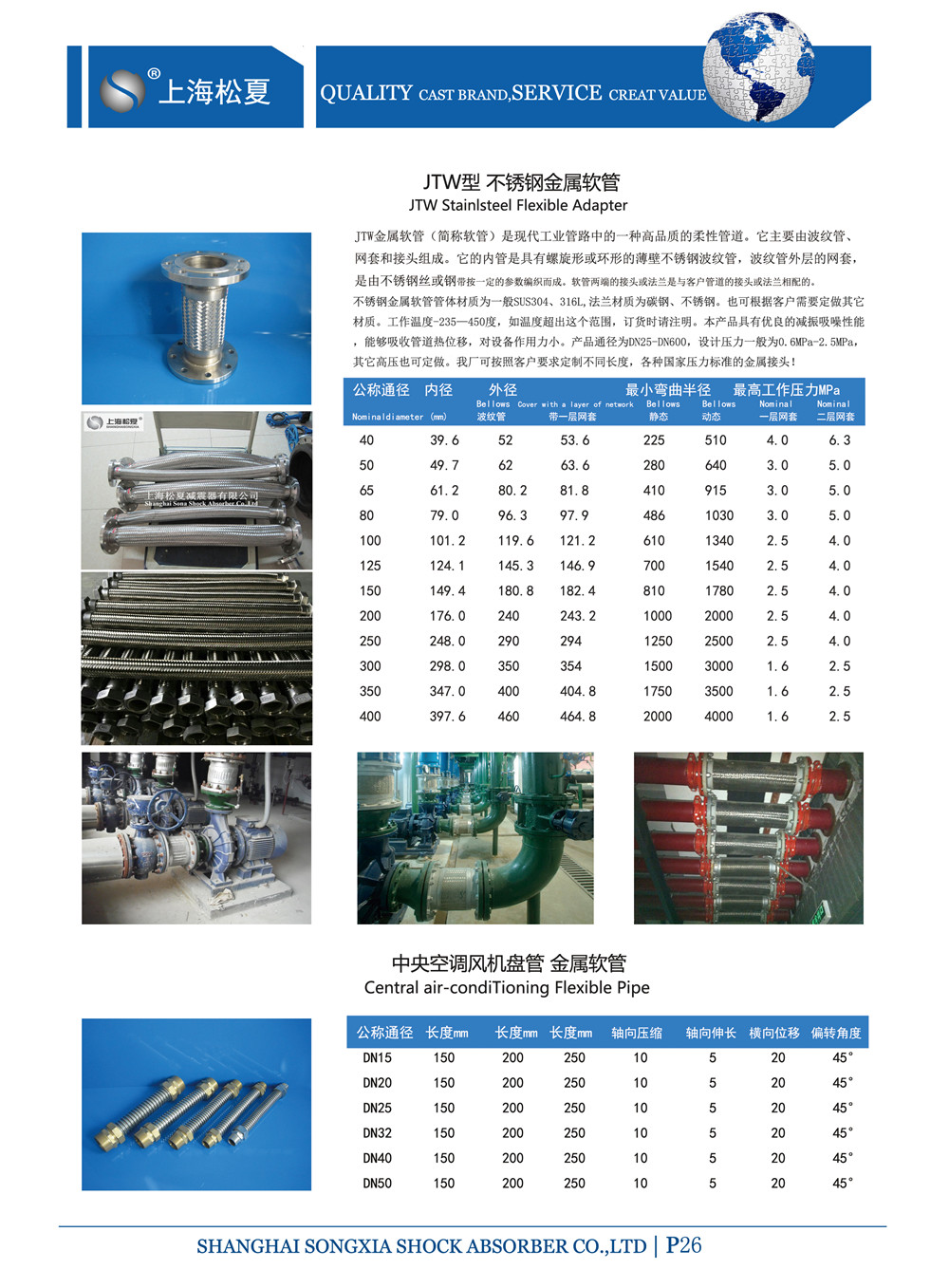 2、SUS304金屬軟接管體部分材質為SUS304,法蘭和拉桿材質為碳鋼,也可根據客戶需要定做。
