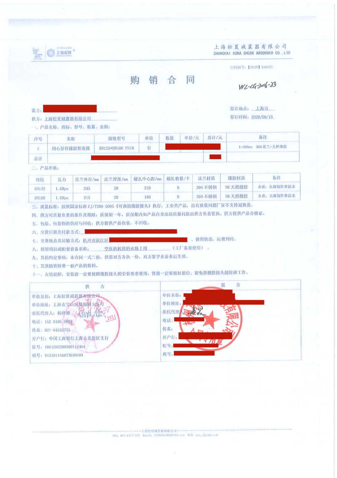 上海松夏減震器有限公司官方網(wǎng)站為您介紹:【空氣壓縮機機組配套】上海松夏DN125*100同心異徑橡膠接頭采購合同信息,我們松夏公司2020年為【空氣壓縮機機組配套】上海松夏DN125*100同心異徑橡膠接頭,起到了減震和降噪的作用,以下是【空氣壓縮機機組配套】上海松夏DN125*100同心異徑橡膠接頭采購合同介紹。