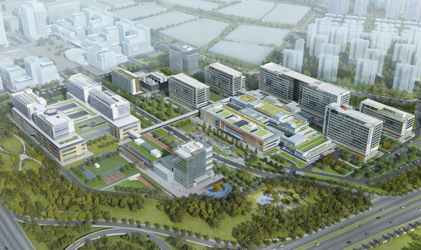 醫(yī)院建筑由美國(guó)設(shè)計(jì)公司按照國(guó)際理念結(jié)合中國(guó)國(guó)情設(shè)計(jì), 采用庭院式布局,著力營(yíng)造自然療愈空間,采用大面積采光使室內(nèi)外環(huán)境渾然一體。醫(yī)院設(shè)置醫(yī)學(xué)轉(zhuǎn)化中心、模擬訓(xùn)練中心、進(jìn)修實(shí)習(xí)樓、學(xué)術(shù)報(bào)告廳、遠(yuǎn)程教學(xué)中心,在門(mén)診和病區(qū)設(shè)置數(shù)字化MDT中心;配套建設(shè)人才公寓,設(shè)置員工活動(dòng)中心和室內(nèi)外運(yùn)動(dòng)場(chǎng),為醫(yī)務(wù)人員創(chuàng)造安全舒適的工作、生活環(huán)境。